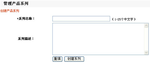 在管理界面,您可以创建您产品的新的系列,也可以修改删除您的产品系列。