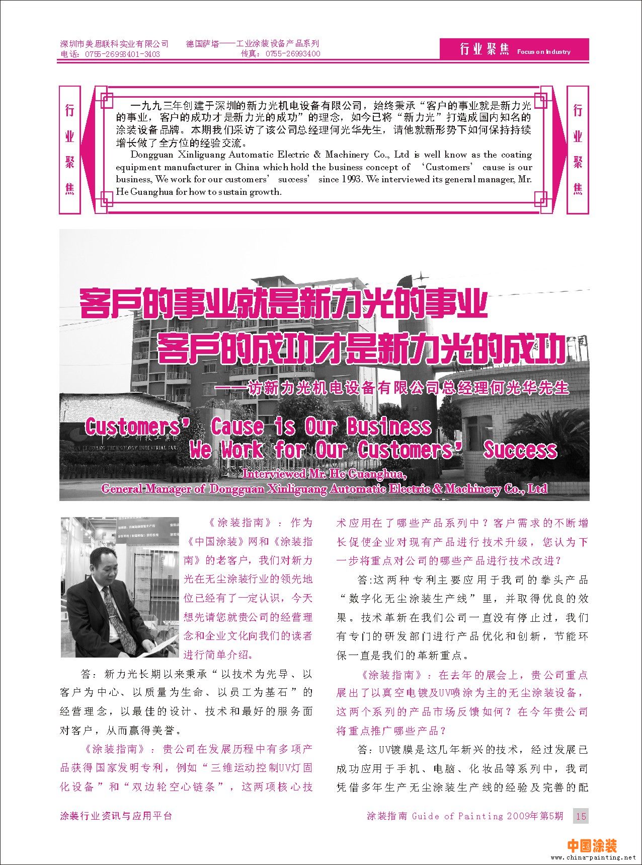 客户的事业就是新力光的事业 客户的成功才是新力光的成功————访新力光机电设备有限公司总经理何光华先生