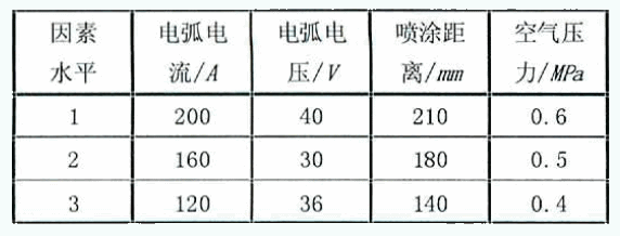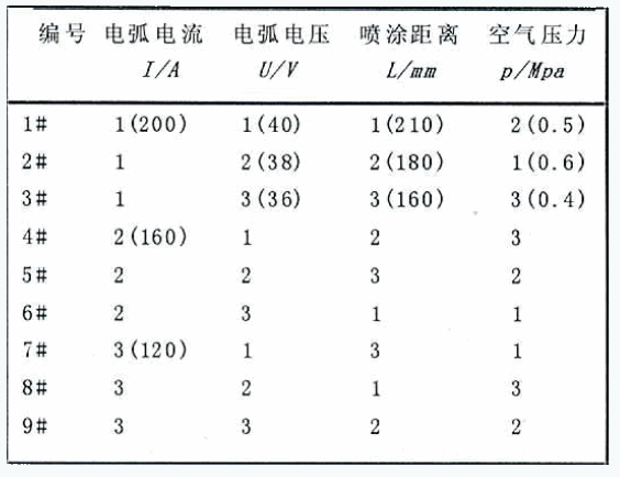 表2 电弧喷涂工艺参数正交设计试验方案