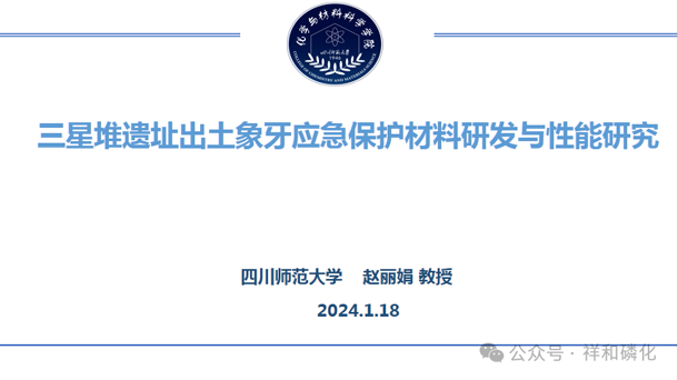 四川师范大学化学与材料学院副院长、教援,省涂料涂装专委会副主任、专委会高级专家赵丽娟女士,报告的题目是《三星堆遗址出土象牙应急保护材料研发与性能研究》。