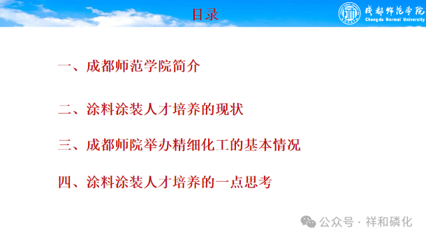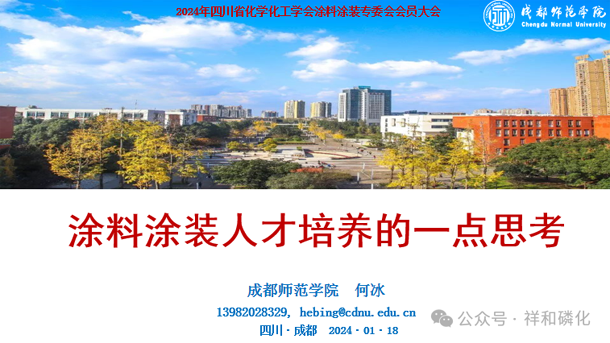 成都师范学院化学与生命科学学院副院长、教授,省涂料涂装专委会副主任,专委会高级专家何冰先生,报告的题目是《涂料涂装行业人才培养的一点思考》。