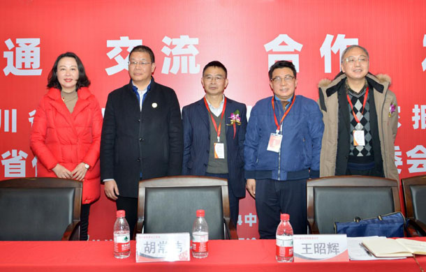四川省汽车服务行业协会执行会长兼秘书长蔡艳女士(左一),出席四川省化学化工学会涂料涂装专委会会议时,与伍泽涌主任委员(右二)及出席会议的嘉宾合影。