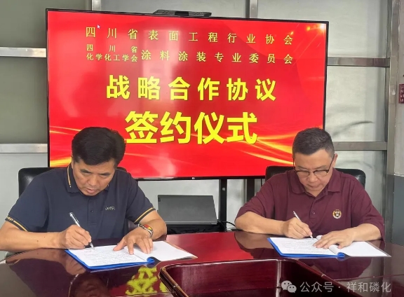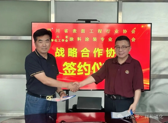 四川省化学化工学会理事兼第四届涂料涂装专业委员会主任、四川大学锦城学院特聘教授、四川省创新创业指导导师、祥和涂装集团董事长兼总工程师伍泽涌先生与四川省表面工程行业协会执行会长钟友昭、秘书长钟伟出席,在祥和涂装集团总部二号会议室四川省化学化工学会涂料涂装专委会与四川省表面工程行业协会战略合作协议签约仪式,全程见证签约并讲话。