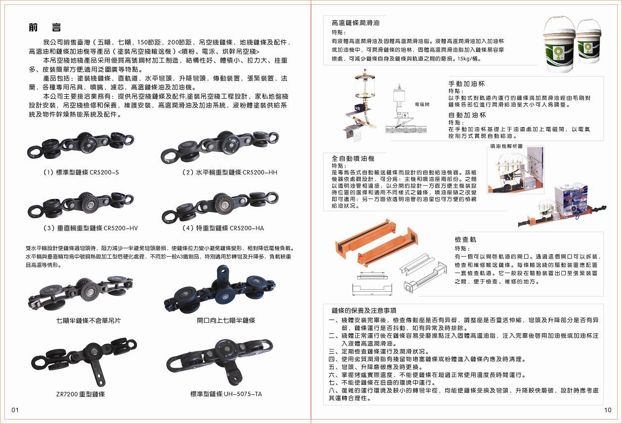 五吨链条(特重型)五吨链条(特重型)13560747806<BR> <BR> UH-5075-HA<BR> <BR> 产品信息: <BR> 将水平轮及垂直轮均改为负重型,其承载能力及耐 磨性为此类链条中最佳者,适用于线路非常复杂,悬挂物件较重和温度较高的生产环境。 <BR>